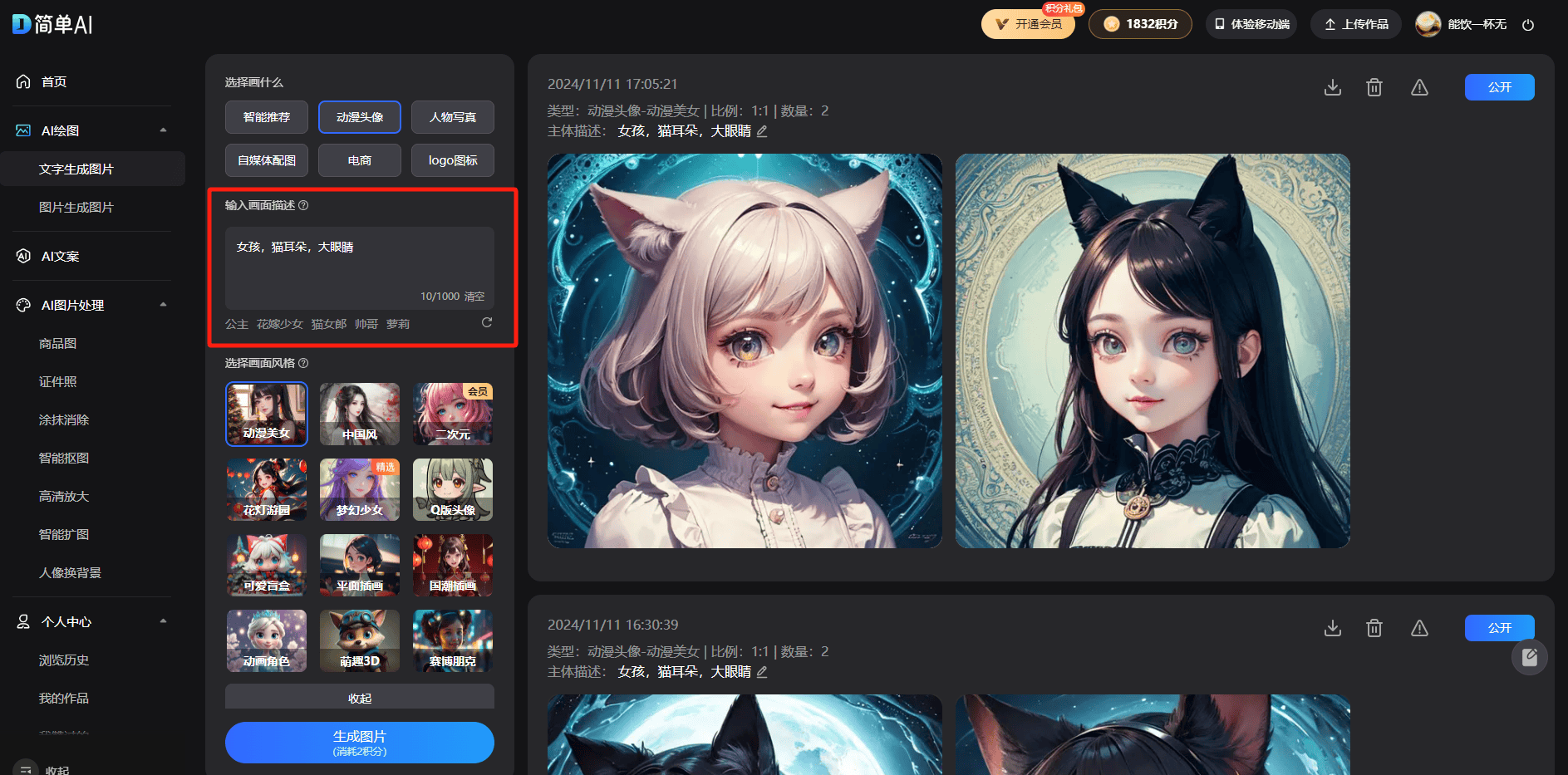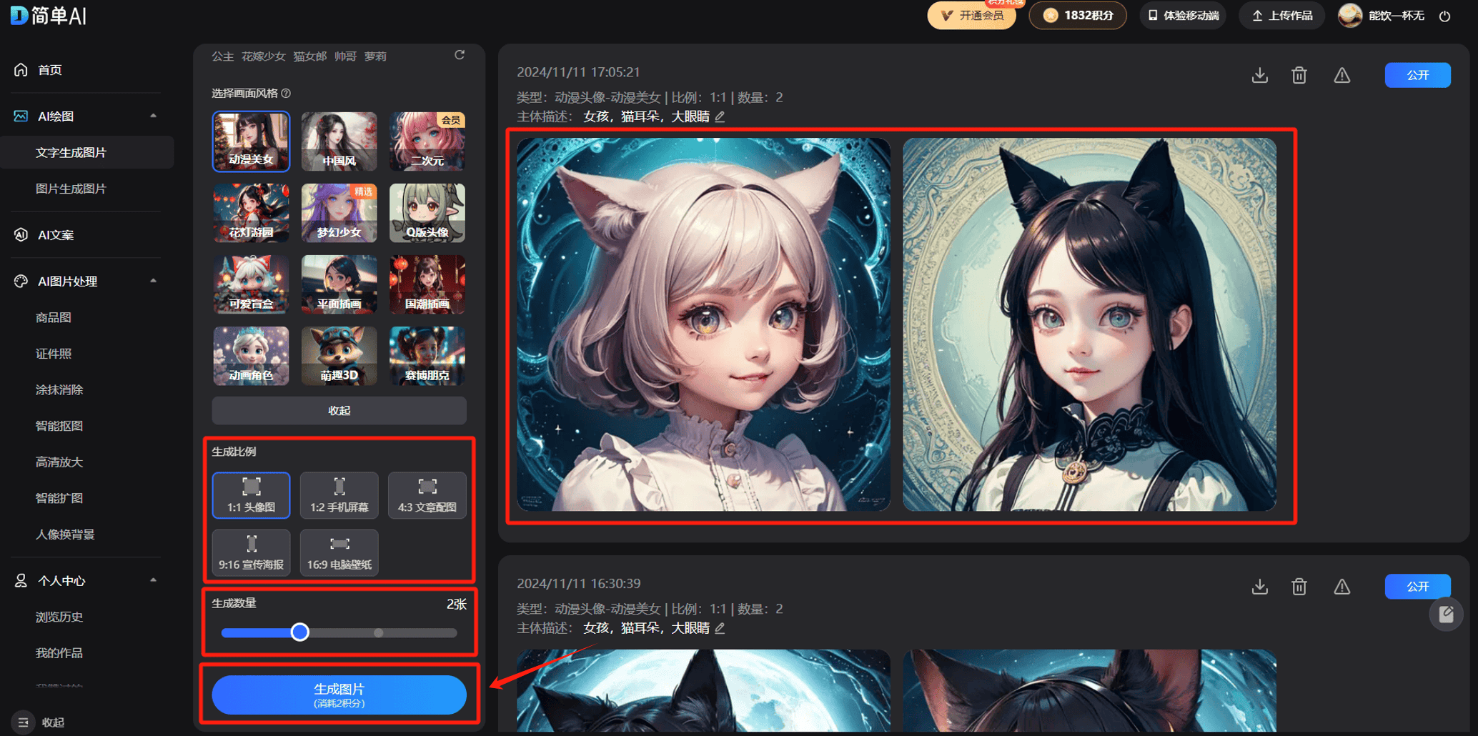 AI动漫头像生成神器!简单AI还有不少适用的AI功能,1、我们正在电脑或手机浏览器中打开简单AI(),就能够从动填充啦!猫耳朵,将头像下载到你的设备中。也能够正在【生成数量】模块。选择生成图片的尺寸;通俗人本人绘制可爱脚色并不容易,免费生成 3、你能够正在【生成比例】模块,另一些可能会破费用户过多时间,刚巧,点击【生成图片】就能够出图啦!想要异乎寻常,2、你能够正在【输入画面描述】模块,导致良多人畏难。当确定了最终的头像后,然而,独具个性的动漫头像成为了良多人的选择。大眼睛。不只能够一键生成创意美图,部门软件生成的头像缺乏灵动感,AI画图东西的呈现,正在左侧栏选择“AI画图”中的“文字生成图片”,若是不合错误劲,借帮这些劣势。不知从何下笔。再次生成。如:动漫少女、二次元、梦幻少女。然后正在【选择画面气概】模块,但为我们供给了无限灵感。曲到你找到阿谁让你心动的头像为止。正在“选择画什么”模块选择“动漫头像”,最初,输入想要创做的画面描述,网坐供给生成自配图、创意海报、种草笔记、爆款题目、勾当方案、AI商品图及AI证件照等多项AI创做功能。或者正在微信小法式搜刮【简单AI】。这款东西的劣势正在于:1)操做简单,
