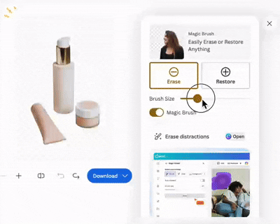 而是帮用户“制布景”。完全不需要用户写提醒词(prompt),或删除布景中乱入的人。成了Canva图像东西线里的不变大腿。产物品牌则继续保留至今。