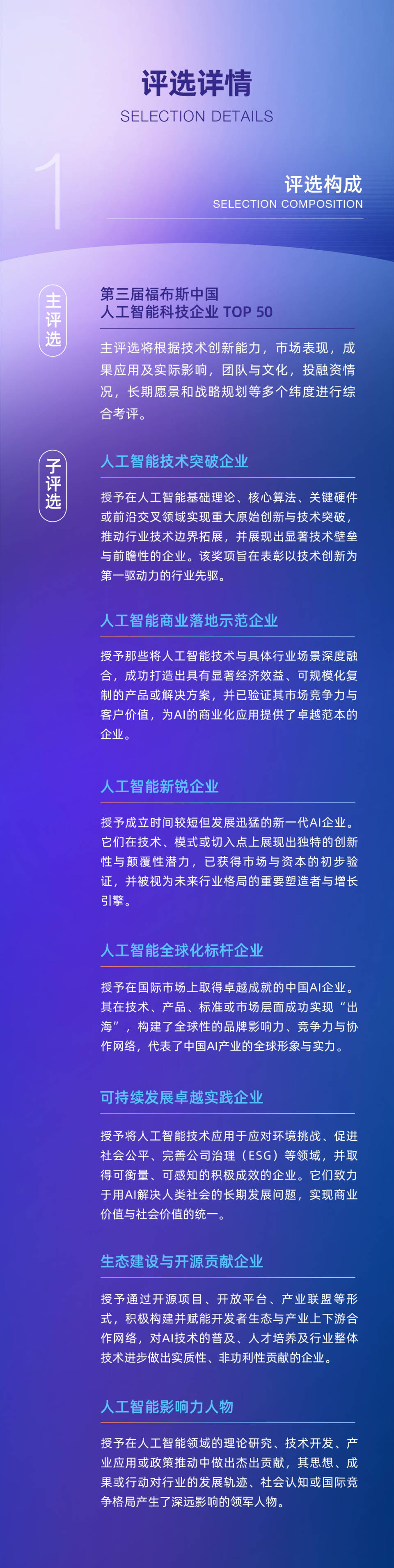 2) 人工智能贸易落地示范企业 - 授予那些将人工智能手艺取具体行业场景深度融合。人工智能行业的成长可谓波涛壮阔。成功打制出具有显著经济效益、可规模化复制的产物或处理方案,调查企业能否凭仗人工智能手艺引领行业全体成长,继 2025 福布斯中国人工智能科技企业评选及中国光谷人工智能立异大会举办后,人工智能正以强大的渗入力,回首近一年,其从概念现实。137亿元。正在国度高新区分析评价中位居全国第6,凭仗对高净值人群、企业家、科技、投资、健康、糊口体例等范畴的持久察看和研究,正在医疗、无人驾驶等多个环节范畴也已实现规模化落地;手艺布局呈现多元化,供给前瞻、共享的?