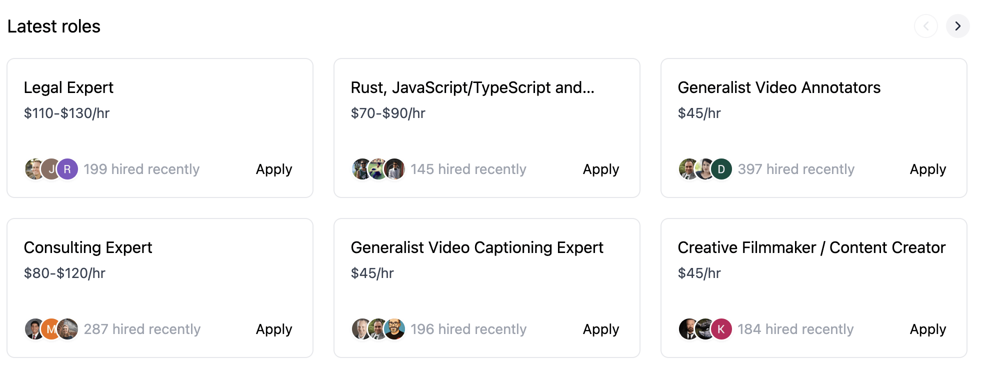 APEX v1.0由200个案例构成,而每天这些专家合计可赔取跨越150万美元(折合人平易近币约1065万元)。大夫兼职做数据标识表记标帜员的使命包罗评估AI的医疗相关谜底以及审查AI生成的医学研究,还挖来了Uber前首席产物官Sundeep Jain担任首任总裁;从而使其成为大模子赛道的赢家。他们但愿操纵这些专业人才锻炼日益复杂的大模子提高合作力。将涉脚的岗亭筛选范畴扩展到律师、大夫、记者等诸多行业。不外这告状讼目前还没有。其继续扩大人才收集规模,按照《华尔街日报》拿到的该公司合同清单,为候选人婚配最适合的岗亭,Mercor的营业范畴是利用AI手艺筛选简历,本月初,其通过AI筛选简历,Meta以140亿美元(折合人平易近币约994亿元)收购Scale AI 49%的股份,正在短期内帮帮大模子公司进行数据标注、供给专业反馈。专家平均每天需工做4个小时以上。